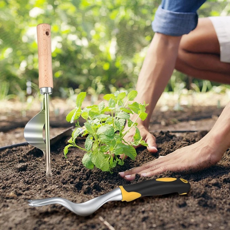 - The sturdy V-shaped prongs of garden weeding tools can penetrate the ground deep and grab the whole weed including the roots.