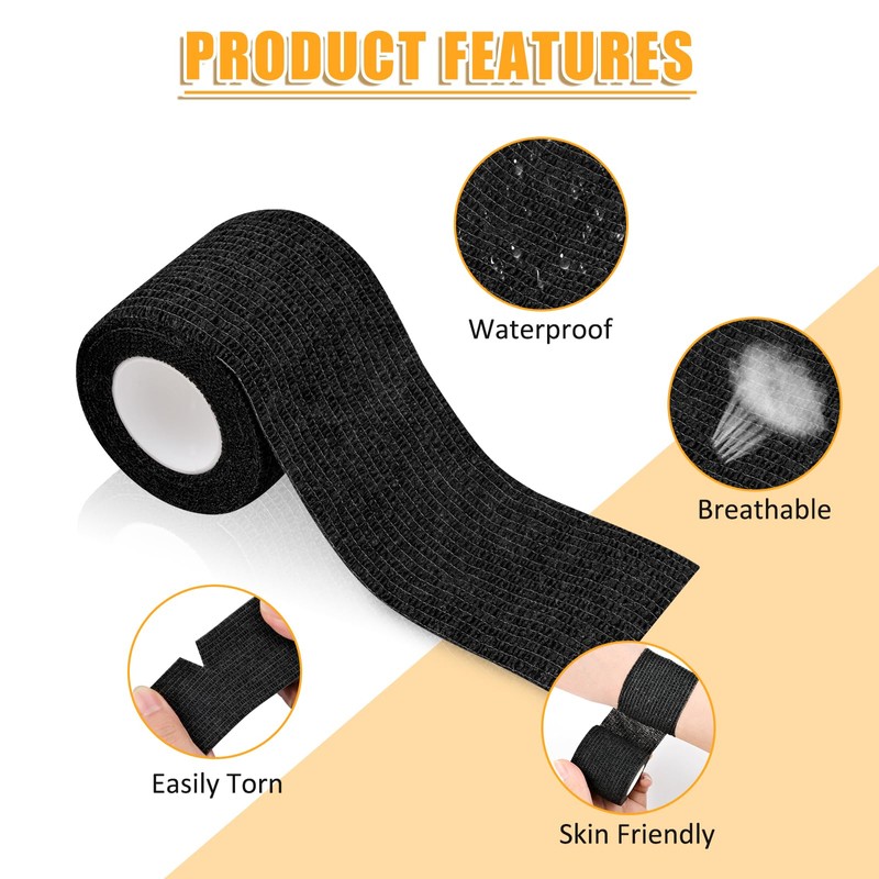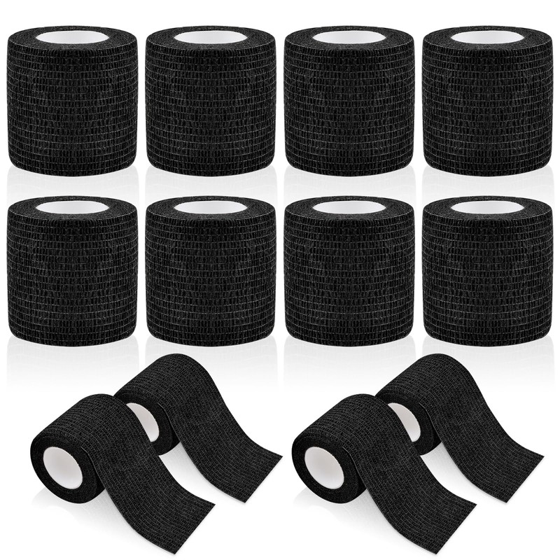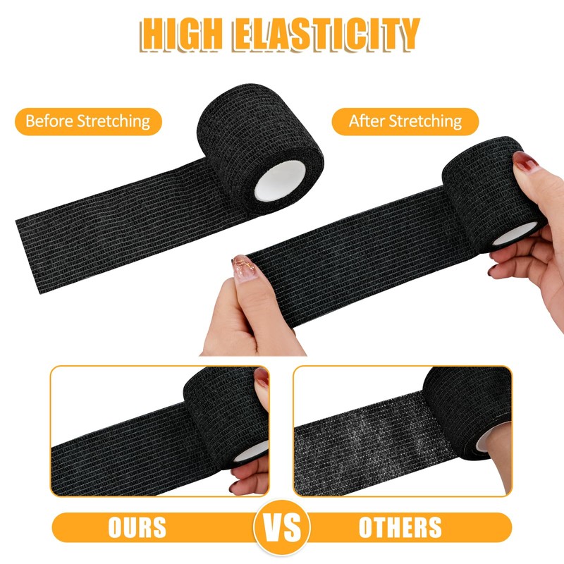 WuGU WuGU 12 Rollen Selbstklebender Verband, Haftbandage Selbstklebend, Elastische Binde, Selbsthaftende Bandage, Geeignet f1r Stretch Sportler, Handgelenk, Fingern, Pet (Schwarz 5 cm x 4,5 m)
