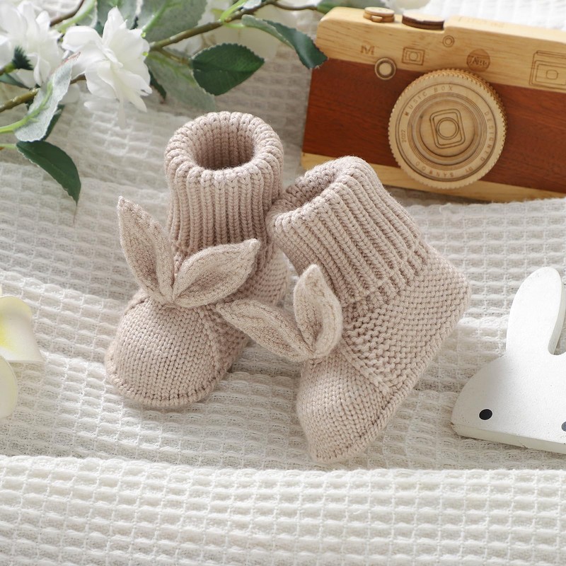 Wugugu Baby Booties Newborn First Walkers Soft Knit Boots Warm Knitted Crib Shoes for Boy Girl Crochet Infant Sock