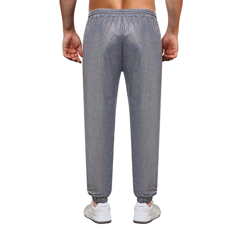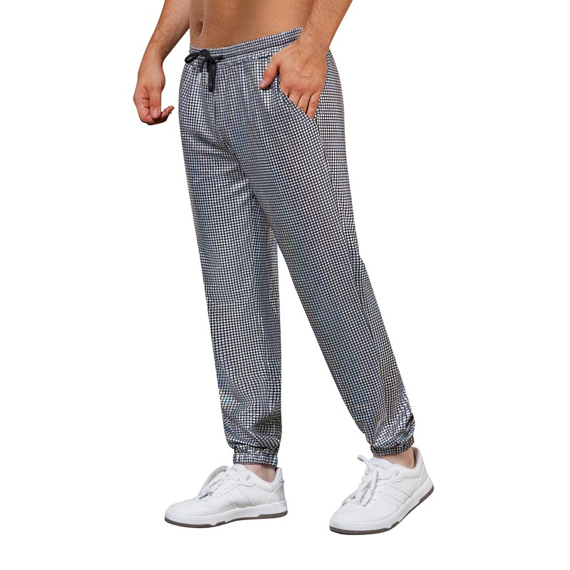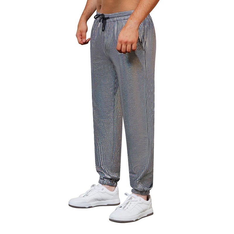 WULFUL Mens Metallic 70s Disco Costume Sequin Party Jogger Pants