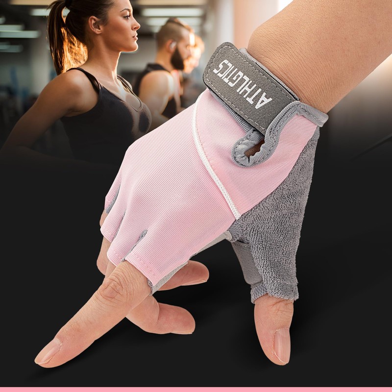 WULI Adult Men's and Women's Spring/Summer Half Finger Gloves, Non Slip and Breathable, Cycling, Riding, Shock Absorption, Fitness, Outdoor Half Finger Gloves (Pink, Medium)
