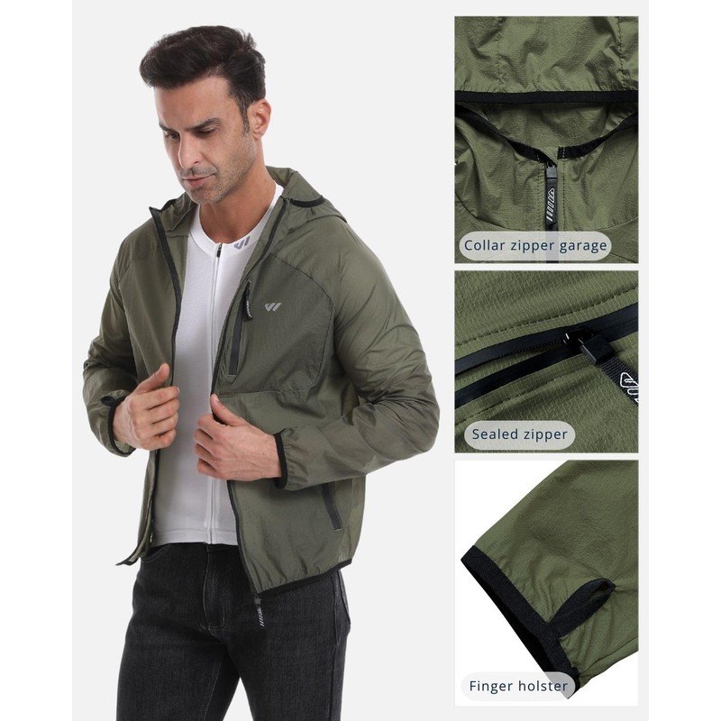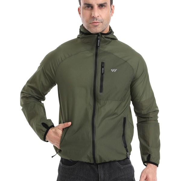 Wulibike Mens Windbreaker Jackets Lightweight men's cycling jacket with Hood Unisex Packable Golf Running Wind Breaker Jacket