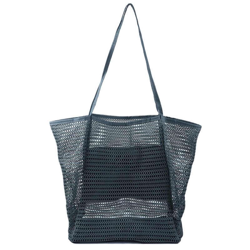 WuliTown Mesh Beach Tote Womens Shoulder Handbag,Elegant Beach Tote Bag,Stylish and Lightweight Summer Essential (Gray)