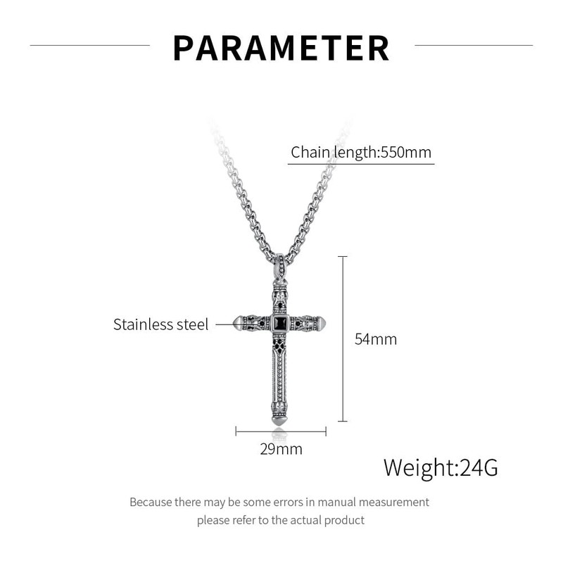 - Size and Chain Details:The mens cross pendant measures 2.13 inches x 1.4 inches and comes with a 21.6 inches stainless steel chain.Its sleek design is both fashionable and a statement of individuality.