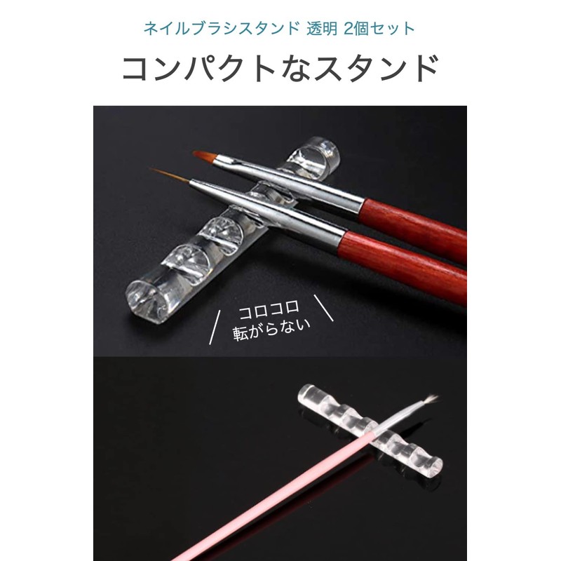 Wumio Nail Brush Stand, Transparent Clear, Set of 2, Slim Brush Stand, Brush, Self Nail, Gel Nail Tool, Fixed, Portable, Compact, Stick, Brush Holder