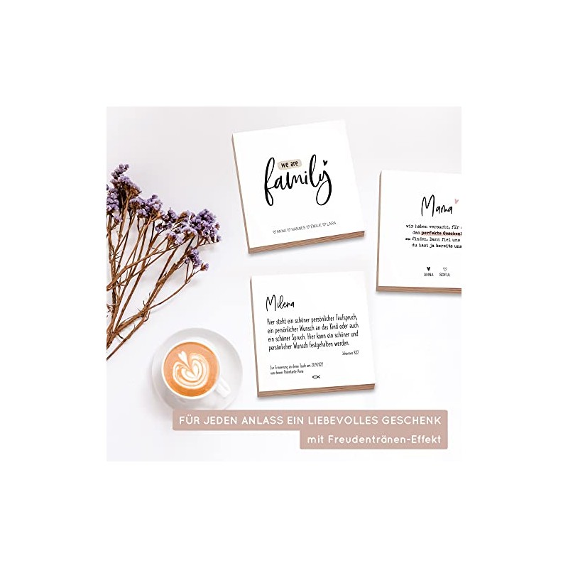 Wunderpixel® Holzbild Taufspruch mit Widmung, Namen, Datum - personalisiert, 15x15x2cm zum Hinstellen/Aufhängen, echter Fotodruck mit Spruch auf Holz - schwarz-weißes Wand-Bild Aufsteller Geschenk