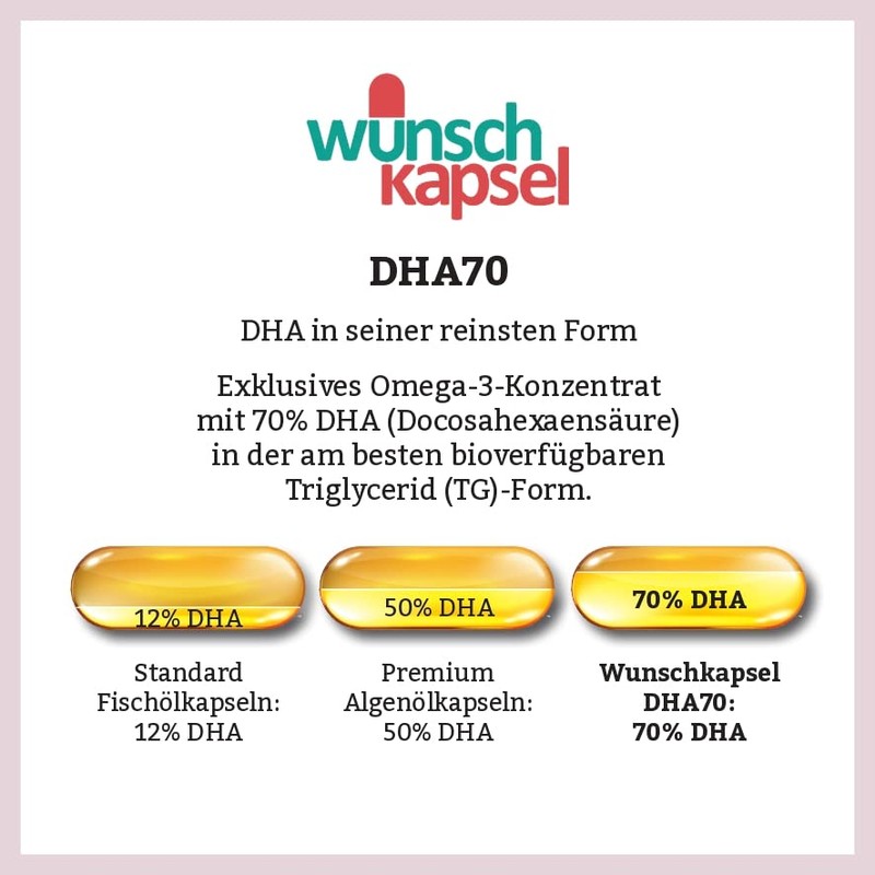 Wunschkapsel DHA70 (75 Capsules) | 70% Concentrated DHA (Docosahexaenoic Acid) | Optimal Bioavailability and Protection through Blister Pack | Premium Omega-3 from Germany