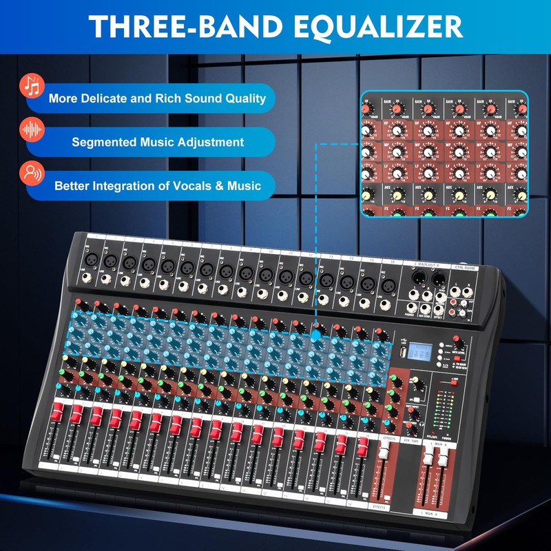 WUPYI 16 Channel Professional Powered Mixer with USB Slot Power Mixing,Professional Mixer Live Studio Audio Sound Mixing Console with XLR, 48V Phantom Power