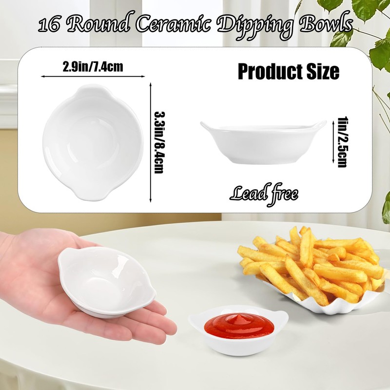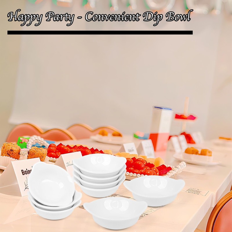 - Perfect Size: Each dish holds 2 ounces (measuring 3"W x 1"H). These dipping bowls sauce dish dipping sauce cups are ideal for food preparation and serving sauces such as sushi sauce, tomato sauce, salad dressing, BBQ condiments, snacks, and more. They are perfect for individual servings of dips like ketchup for French fries, butter for shrimp dipping, chutney, or olive oil