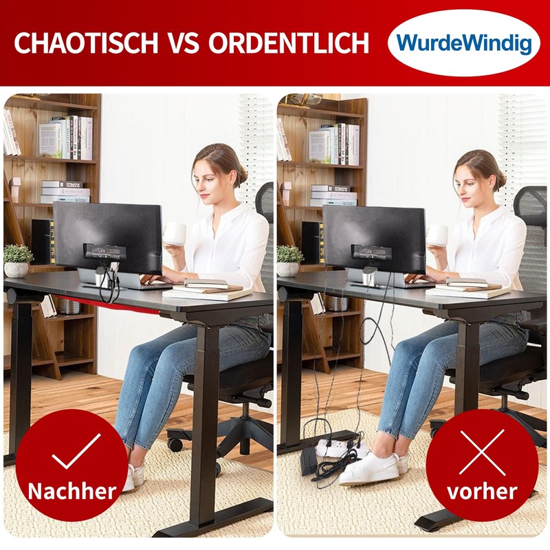 - Large format for complex cable management: with 95 x 24 cm, this XXL cable network offers enough space for numerous cables, adapters and power strips. Ideal for large desks, workstations or server rooms.