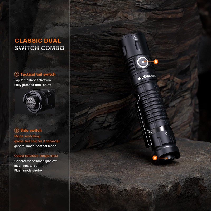 • Dual mode design: Wurkkos TD04 LED torch has tactical mode and EDC mode. Long press the side button for more than 3S under power to state, the light will switch to low light mode. This is the switching EDC mode successfully. Long press the side button for 3S to switch to very bright mode to successfully switch the tactical mode.