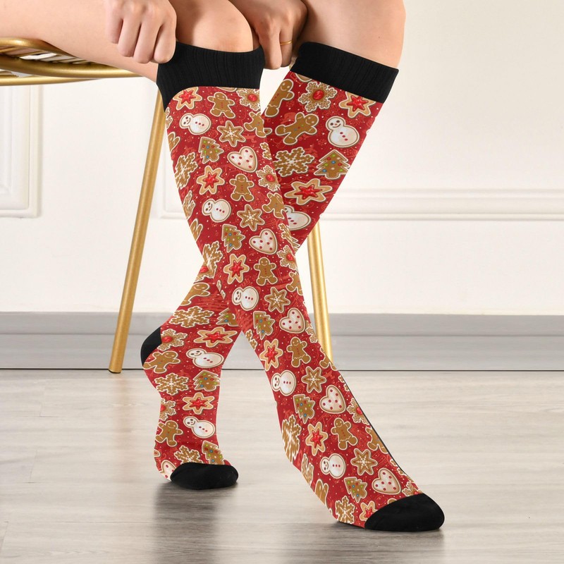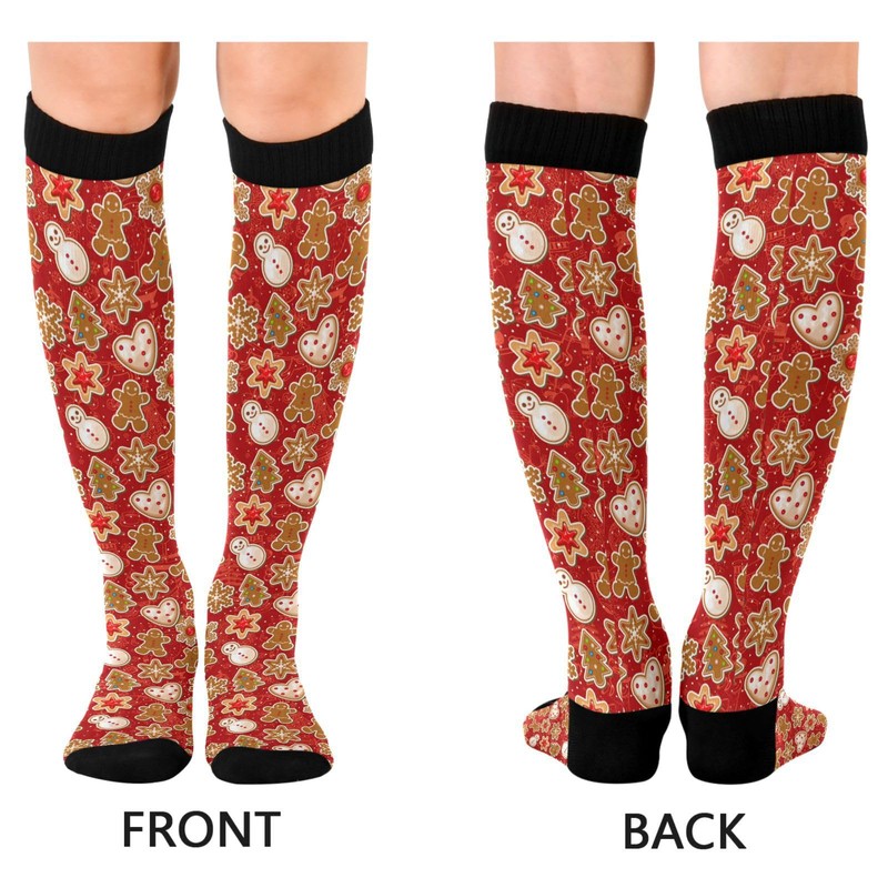 Wusikd Christmas Gingerbread Man Compression Socks for Women and Men Circulation Snowflakes Long Socks for Athletic Running 1