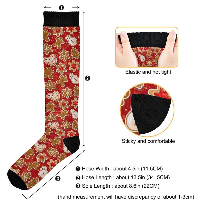 - BETTER FITTING: One size. Foot width: 4.5in, Sole length: 8.6in, Total length of socks: 22.8in. Extremely stretchable, regardless of gender, regular wear can reach the knee position.