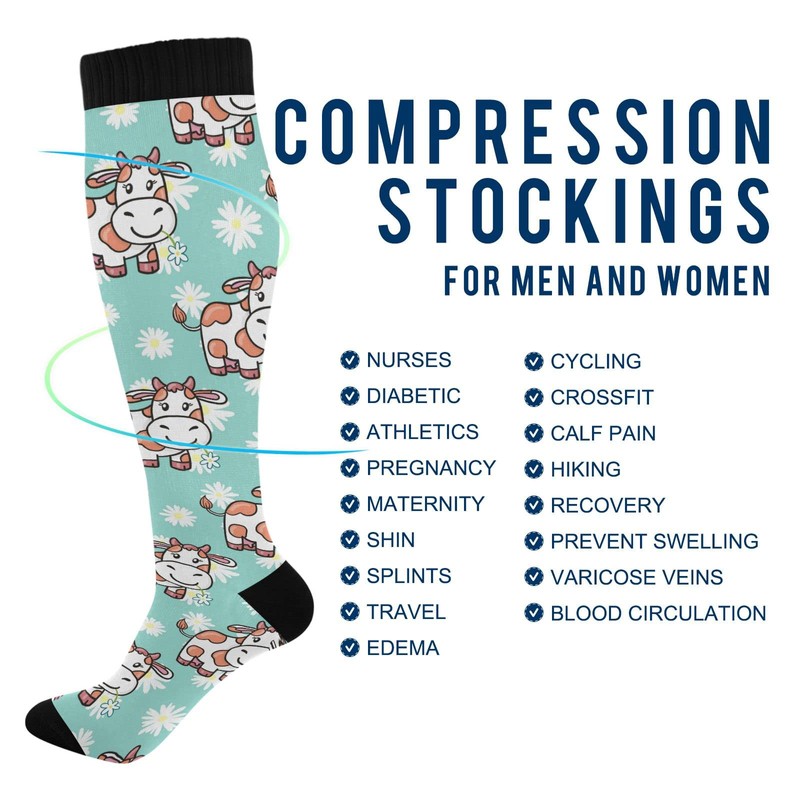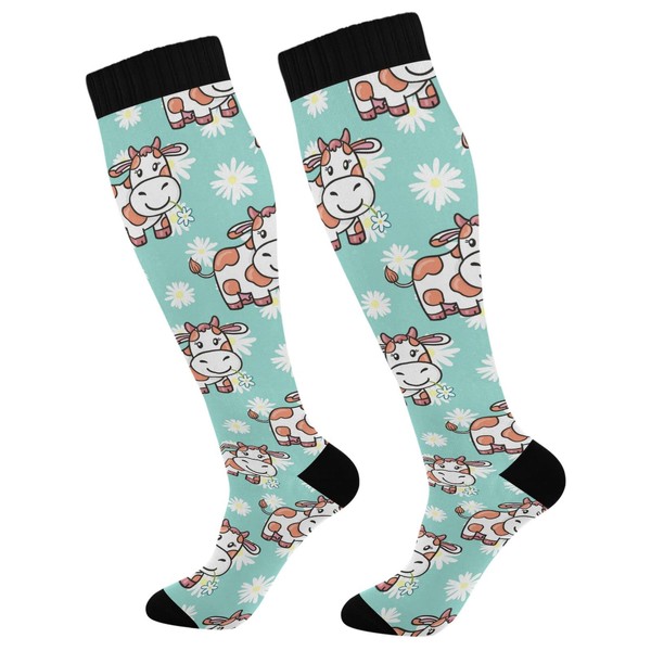 Wusikd Flower Cow Compression Socks for Women and Men Circulation Cute Long Socks for Athletic Running 1