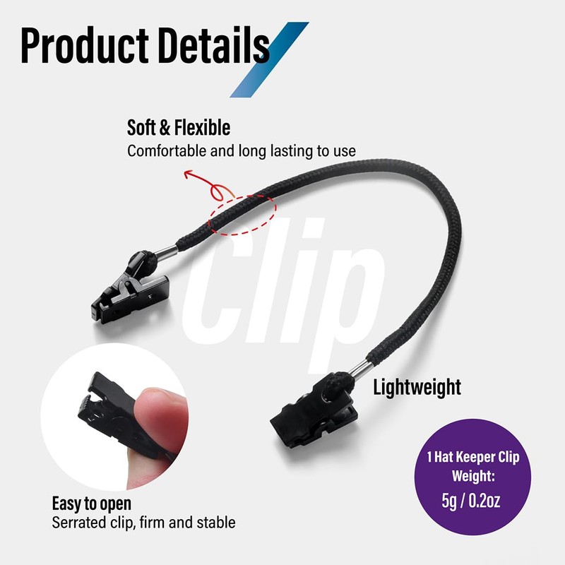 - Hochwertige Materialien: Gefertigt aus einem robusten Nylon-Hutband und einem langlebigen Kunststoffclip. Das fein gewebte Hutband ist weich und angenehm, während der Clip wasserdicht, bruchfest und verschleißbeständig ist – für eine lange Lebensdauer und zuverlässige Nutzung