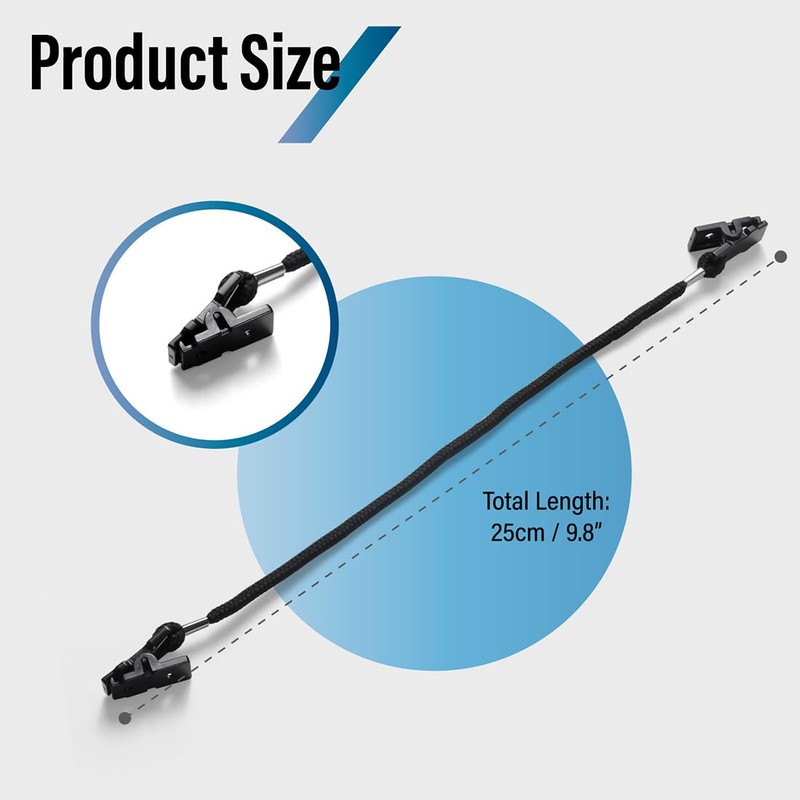 Lieferumfang und Stil: Das Hutclip-Seil ist 25 cm lang und in drei verschiedenen Farben erhältlich, um unterschiedlichen Bedürfnissen und Stilen gerecht zu werden.