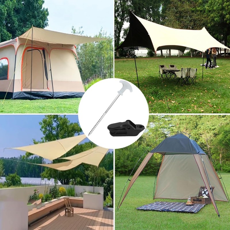 Wide Application These sturdy threaded ground anchors are suitable for a variety of locations such as rocky soils, forests, meadows and campsites. They are ideal for securing tents, gazebos, awnings and blinds.