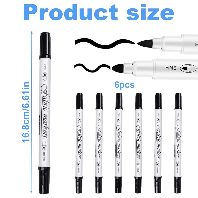 WUSJCOF 6 Pieces Dual-Tip Permanent Fabric Markers, Machine Washable, for Personalizing Shirts, Bags, Textiles (Black)