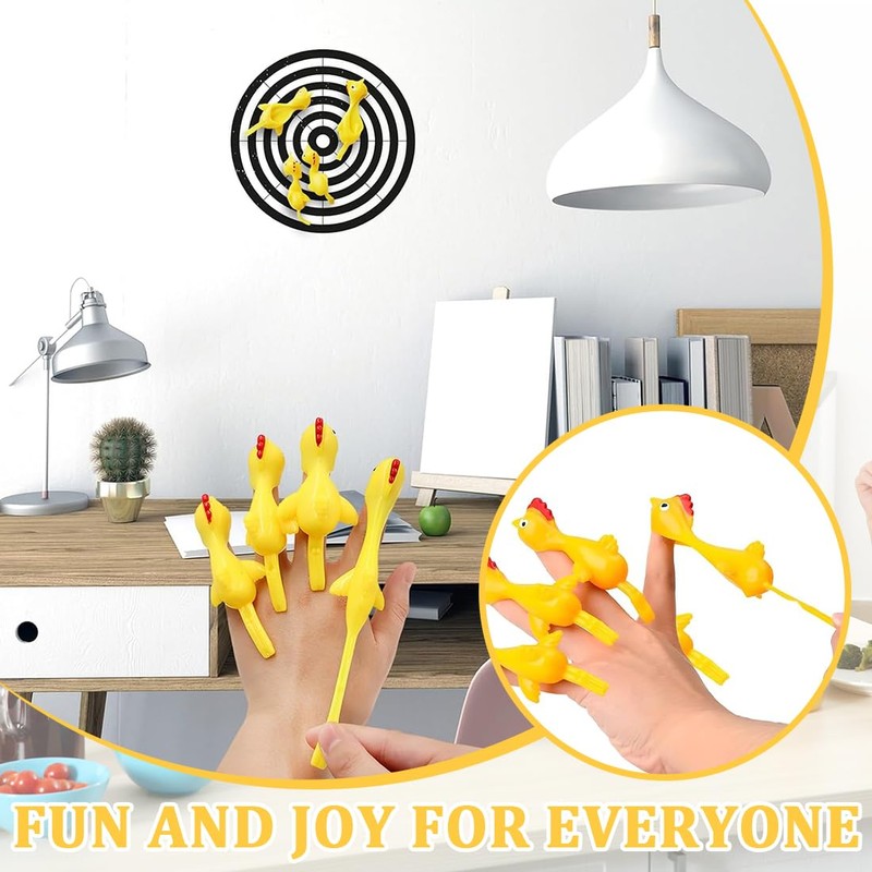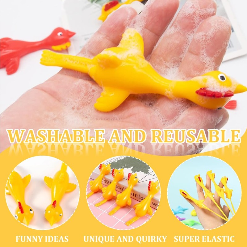 - SLINGSHOT CHICKENS PARTY: each rubber chicken slingshot is super stretchy and super mushy! Individually wrapped and pocket-sized for on the go. Enjoy the moment with your family, friends, colleagues, students, classmates and students!