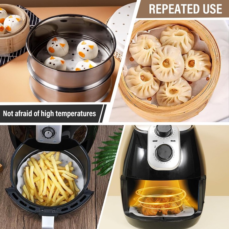 - Wide Application 20cm round baking paper for all brands of hot air fryers, ideal for braising, grilling, baking and deep frying