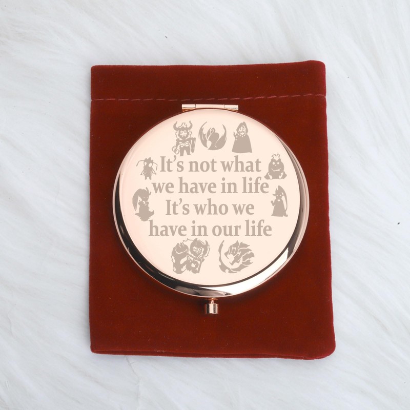 - Each makeup mirror comes in a high quality velvet bag and ready for gift giving. Perfect gift for comic fans and anime character lovers.