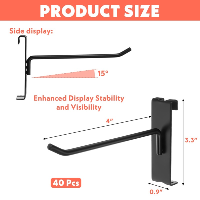 wutfuooo 40 Pack 4 Inch Gridwall Hooks, Grid Panel Hanging Hooks for Retail, Home, and Workspace Organization, Displays, and Storage Solutions(Black)