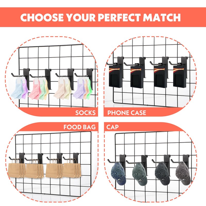Suitable for retail displays, art and craft organization, home storage, and more, these gridwall hooks offer versatile and practical solutions for various environments.