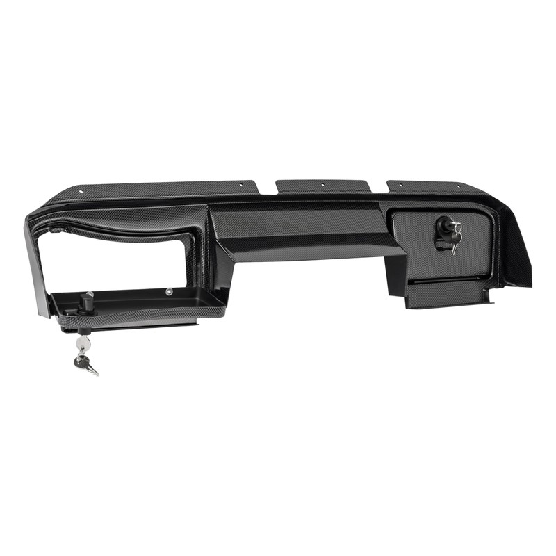 - Rich Functions: The dashboard cover keeps interior components safe from dirt and rain.The two locking compartments provides space for storing personal items. Also, the carbon fiber printing has a woven texture appearance, creating a fashion look full of technology and sportiness