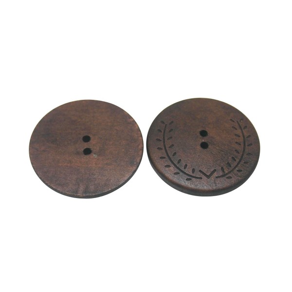 Wuuycoky Large Deep Brown Wood Button Round 50mm Diameter with 2 Holes for Craft Sewing DIY Pack of 10