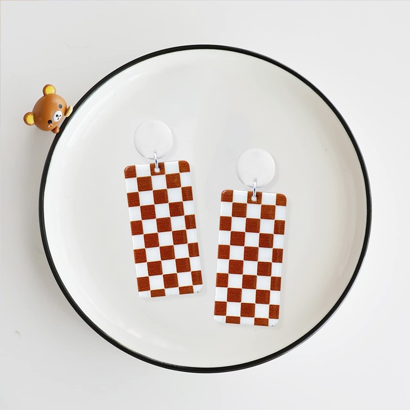WUWEIJIAJIA Unique Acrylic Black White Striped Checkered Dangle Drop Earrings Heart Flower Pattern Stud Earrings for Women Statement (Style-5-Brown)