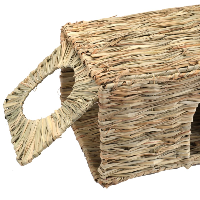 • Multipurpose folding woven grass house is a fantastic square nesting for your little hamster who would love to chew, rest or nest in. When you fold it, you may use it as their mat as well.