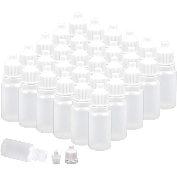 - Package includes 150 pcs plastic dropper bottles, capacity: 10ml / 0.34 oz, size: 6cm H x 2cm D.
