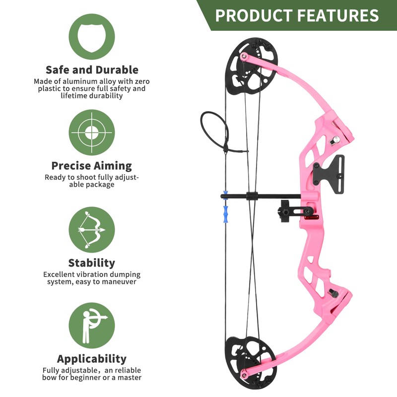 - RIGHT HAND COMPOUND BOW: This right-handed hunting compound bow will be held in your left hand, pull the strings with your right hand, and determine the arrow with your right eye to achieve perfect aim. Perfect for outdoor competition hunting traning shooting target practice sport games.