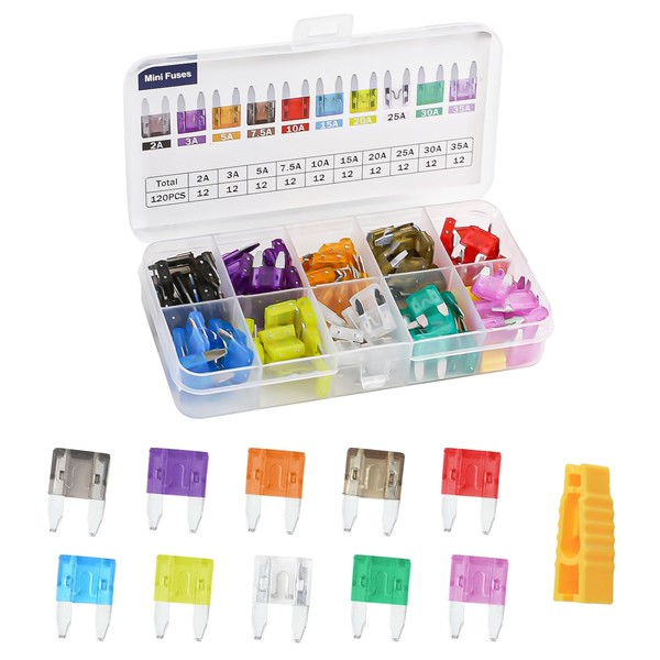Wuyaoyao 120PCS Mini Car Fuse Kit, Mini Size Car Fuses Assortment Kit, 2A 3A ...