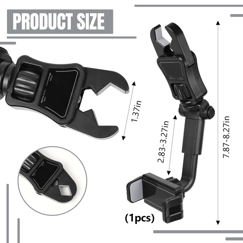 - 【Excellent Quality】: It is made of sturdy and durable ABS material, with strong pressure resistance and not easy to be deformed. Its structure is reasonably designed to clamp the phone stably so that it won't easily shake or fall off when driving over bumps. Silicone pads can cushion and protect the phone and rearview mirror.