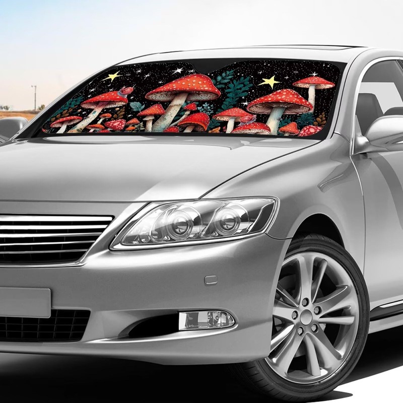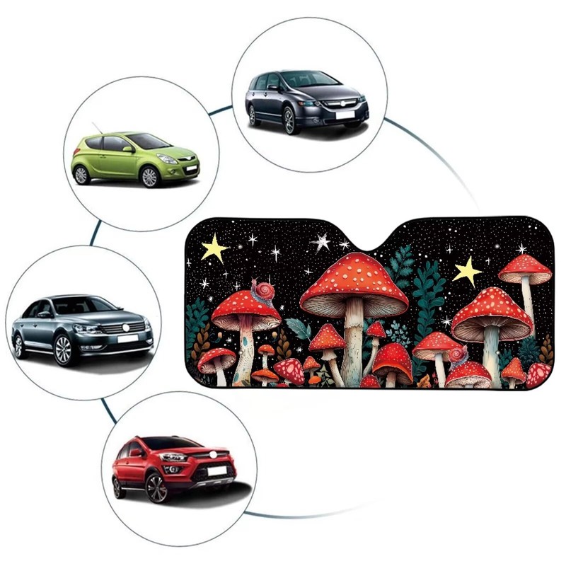 WUYOJUXA Funny Mushroom Forest Windshield Sun Shade,Romantic Mushroom Car Front Windshield Sunshade,Retractable Foldable Windshield Sun Covers for Auto Interior Accessories