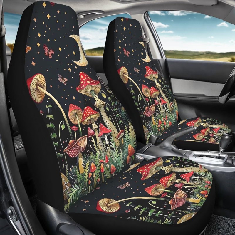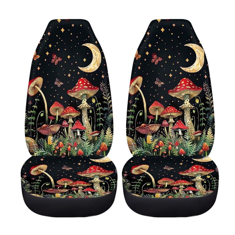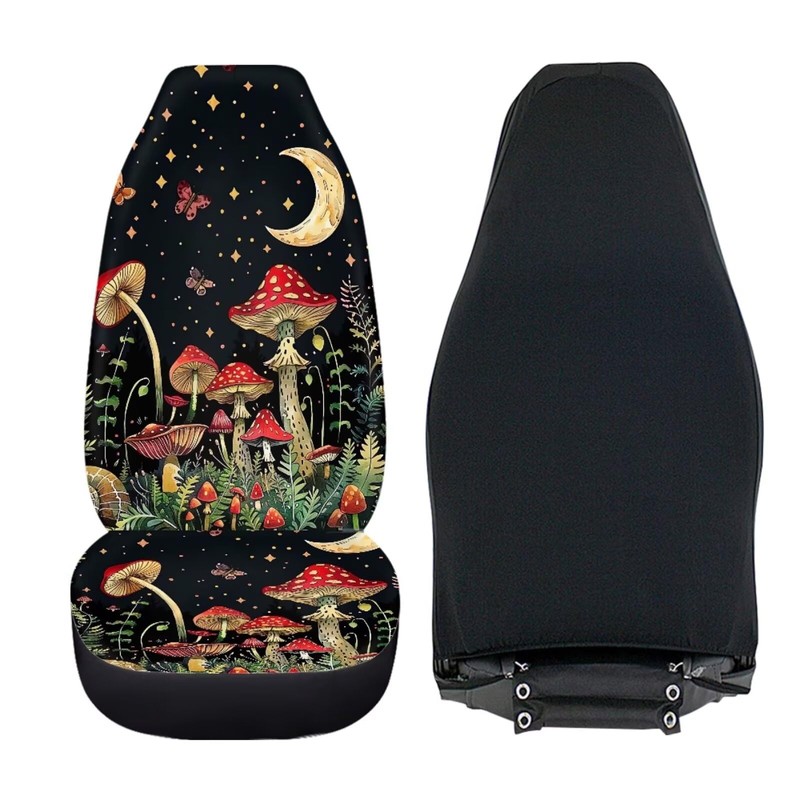 WUYOJUXA Mushroom Print Car Seat Cover Set for Front Seat Only 2 Pack Moon Print Vehicle Bucket Seat Covers Comfortable Front Cushion for Women,Mushroom Car Interior Accessories Set