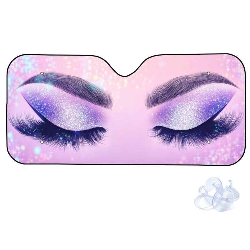 WUYOJUXA Purple Eyelash Front Sun Shade Windshield for Car Cute Windshield Sunshade Foldable UV Ray Reflector Front Window Sun Shade Visor Shield Cover,Keeps Your Vehicle Cool Sun Visor