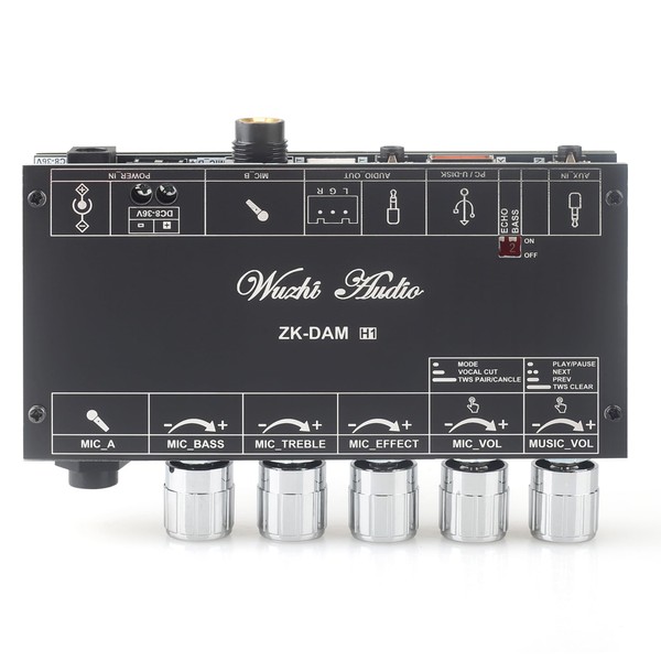 Wuzhi Audio ZK-Dam H1 with Wide Voltage Input (DC 8-36V) Dual Mic Inputs, Dynamic Anti-Feedback, TWS Pairing,USB/AUX/Bluetooth Input