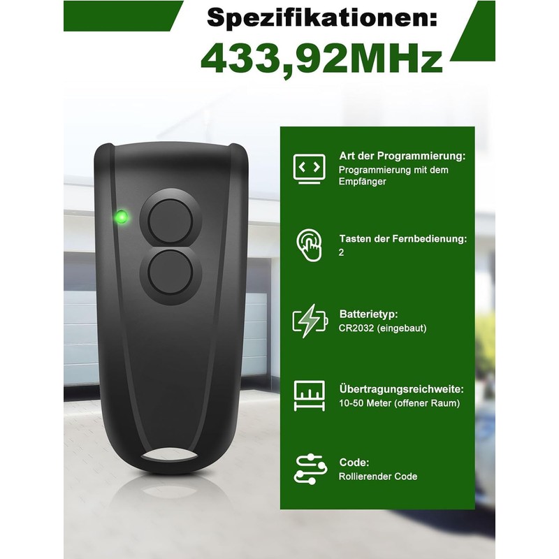 • 【With Battery】This garage door remote control comes with a 3V CR2032 lithium battery, you don't need to buy new batteries.