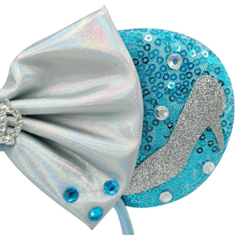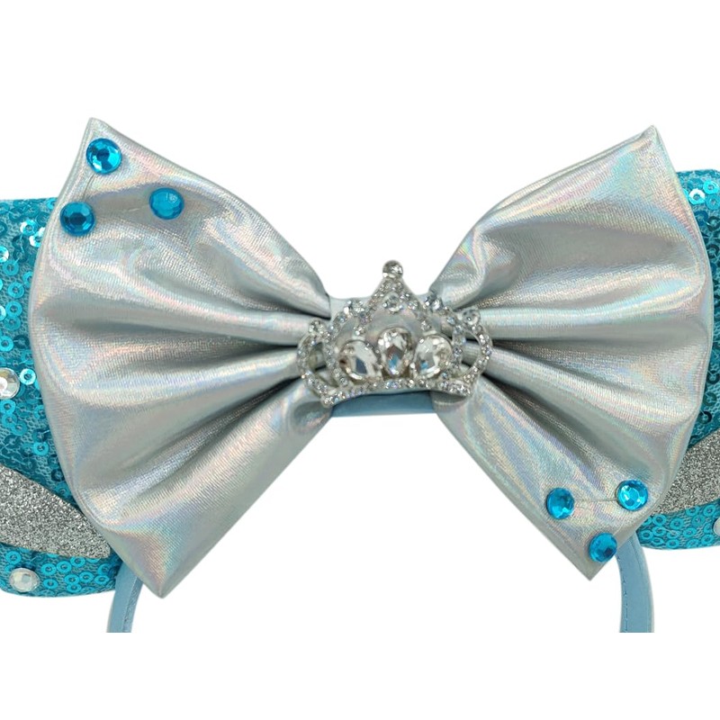 WW-WONDERFULWORLD Shiny Mouse Ears Headbands With Grey Bows & Crown & Sequin, for Mermaid Cinderella Costume Cosplay Glitter Party, for Kids & Adult, Blue; 2GGX