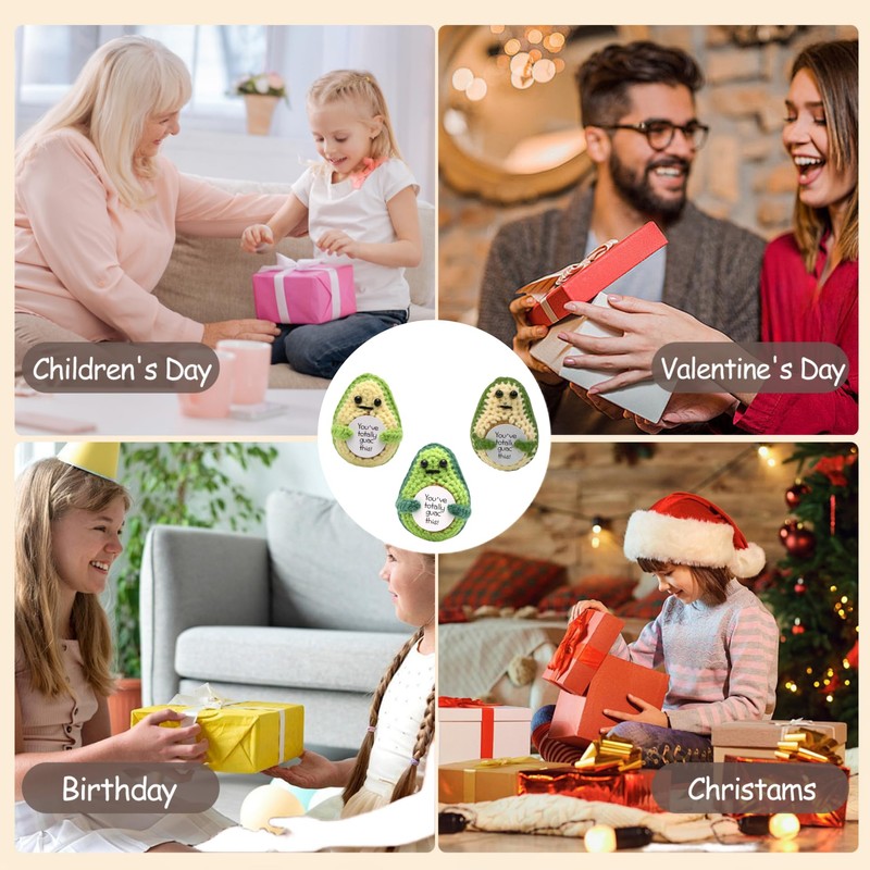 - Adorable gif: A positive knitted avocade can be a meaningful gift which can provide emotional support for friends or family. Your hearts can be bound together by your caring. And you can also think of it as a gift to yourself. There is no one in the world who loves you more than yourself.