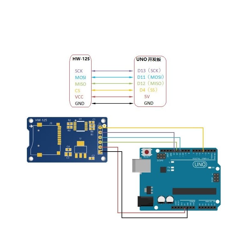 - Control Interface: A total of six pins (GND, VCC, MISO, MOSI, SCK, CS), GND to ground,
