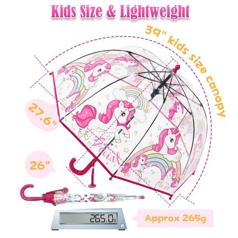- 2.CLEAR UMBRELLA:The clear umbrella canopy is made of POE which allows your girls and boys to see the front clearly when walking in the rain.