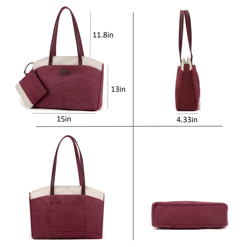 Wxnow Women Laptop Tote Bag Canvas Handbag Purse Shoulder Bag (D-Claret-red)