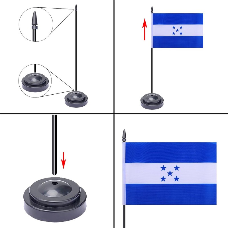 - 【SMALL FLAG ON STICK WITH BASE】Our desk decorations flags are constructed with black plastic poles that are topped with a lance-shaped design. Each pole is anchored by a matching weighted base, ensuring stability and visual appeal.