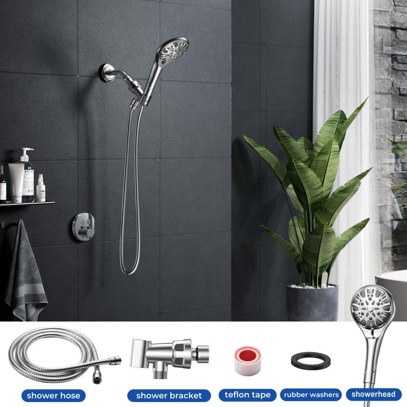 • High-quality Materials: The shower is made of an advanced ABS environmental protection material with an all-surface chrome plating process; Not only beautiful and exquisite, but also effective heat insulation, lightweight, rust-proof, fade-proof, durable and safe; The exterior of the hose is made of stainless steel, which is highly tough, rust-resistant and leak-proof