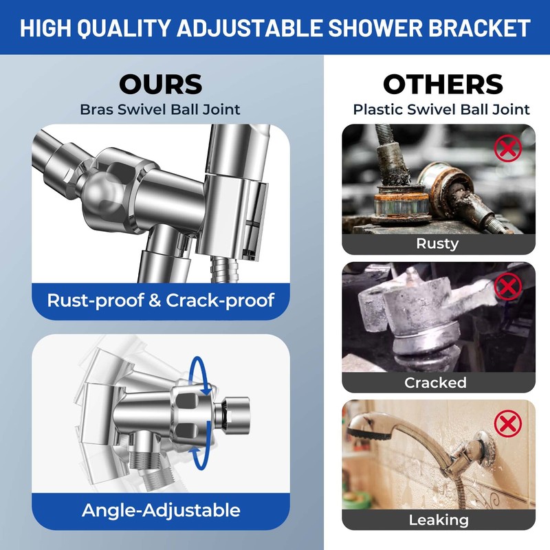• Versatile 9 Settings for Personalized Comfort: Enjoy the luxury of choice with nine different water flow modes, including a Pause Mode for added convenience; From a high-pressure blast to a gentle trickle, find the water flow pattern that suits your preferences; The angle-adjustable bracket with a built-in brass swivel ball adjusts the shower head to whatever angle and height you want