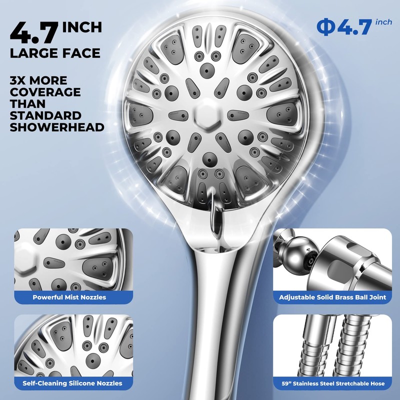 Anti-Clog Nozzles: Experience consistent water flow with our self-cleaning silicone pinhole nozzles that resist clogging and prevent hard water buildup. Enjoy a robust shower spray without interruptions while ensuring easy maintenance.