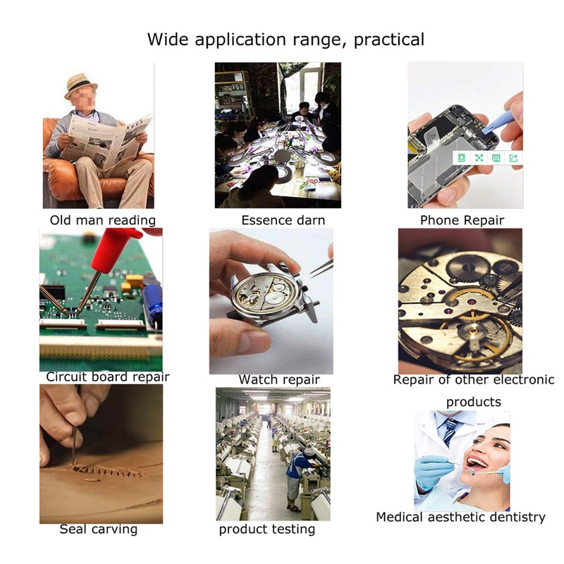 Magnifier series can be used by circuit board test, stamp collector, infirmary,beauty parlor, reader, amateur, engineer. It can amplify 20times. The Led light make it more durable.